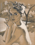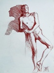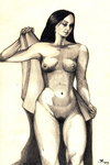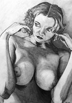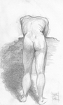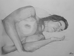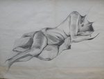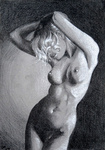 2011Vrouwelijk naakt, claire-obscure, potlood 2B-8B en witte kalk op grijs papier