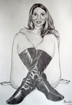 2011Toon studie in potlood van vrouwelijk model op stoel met doekdrapering