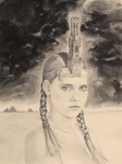 2008Een potlood tekening met donkere schaduwen Suggestief met veer